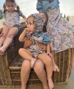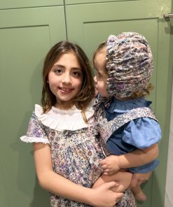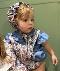 Capota con engomado en la parte delantera y lazada en mismo tejido, el engomado delantero permite adaptarse perfectamente al crecimiento.