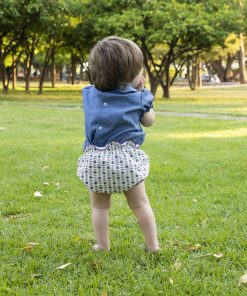Braguita completamente forrada con elástico en la cintura y piernas para mayor comodidad y adaptación al crecimiento del bebé puede usarse desde 0 meses, ya que queda por encima del ombliguito hasta los 18/24 meses. Utilizamos elásticos de baja tensión para que no aprieten y se adapten completamente al crecimiento del bebé)