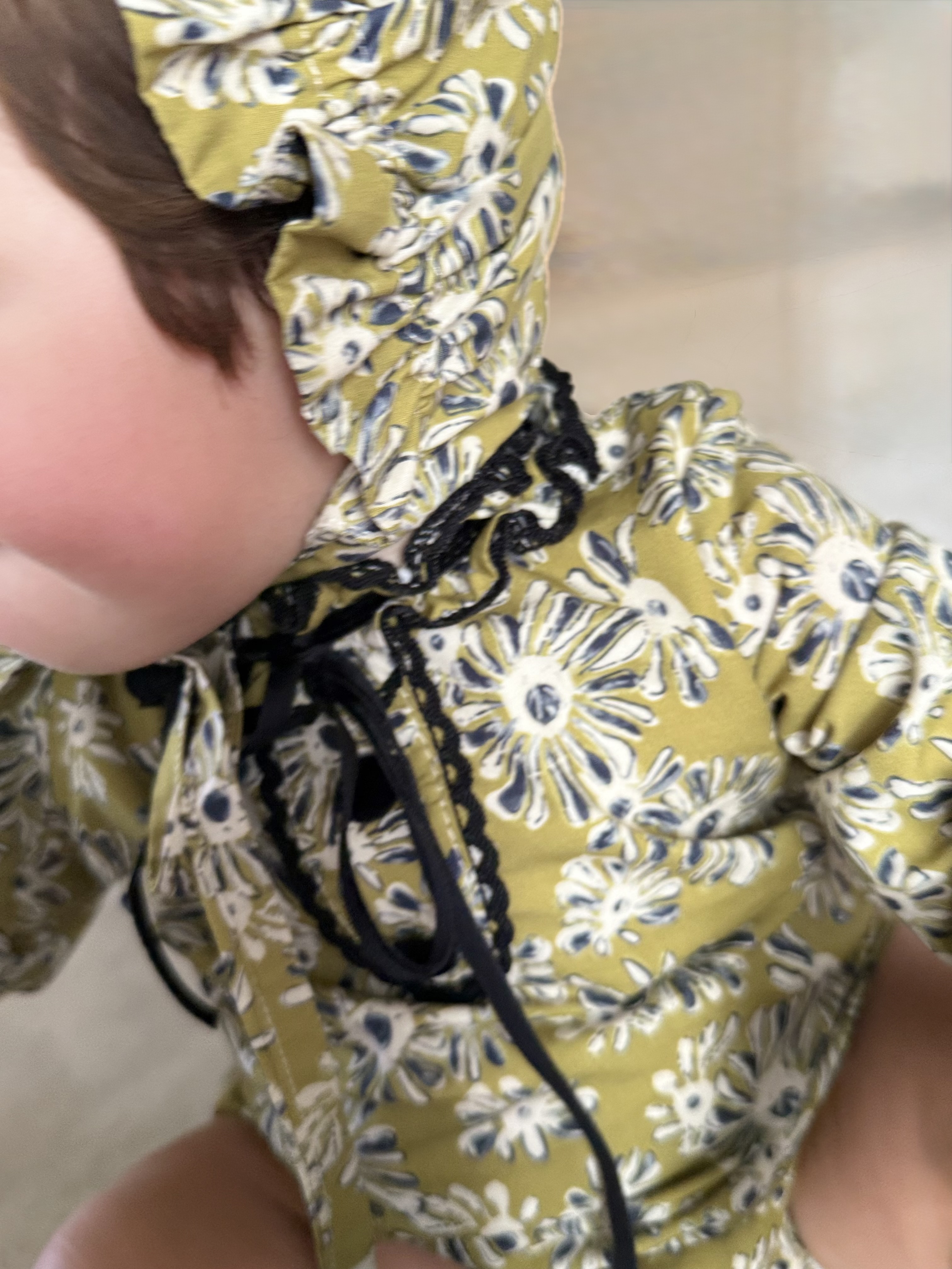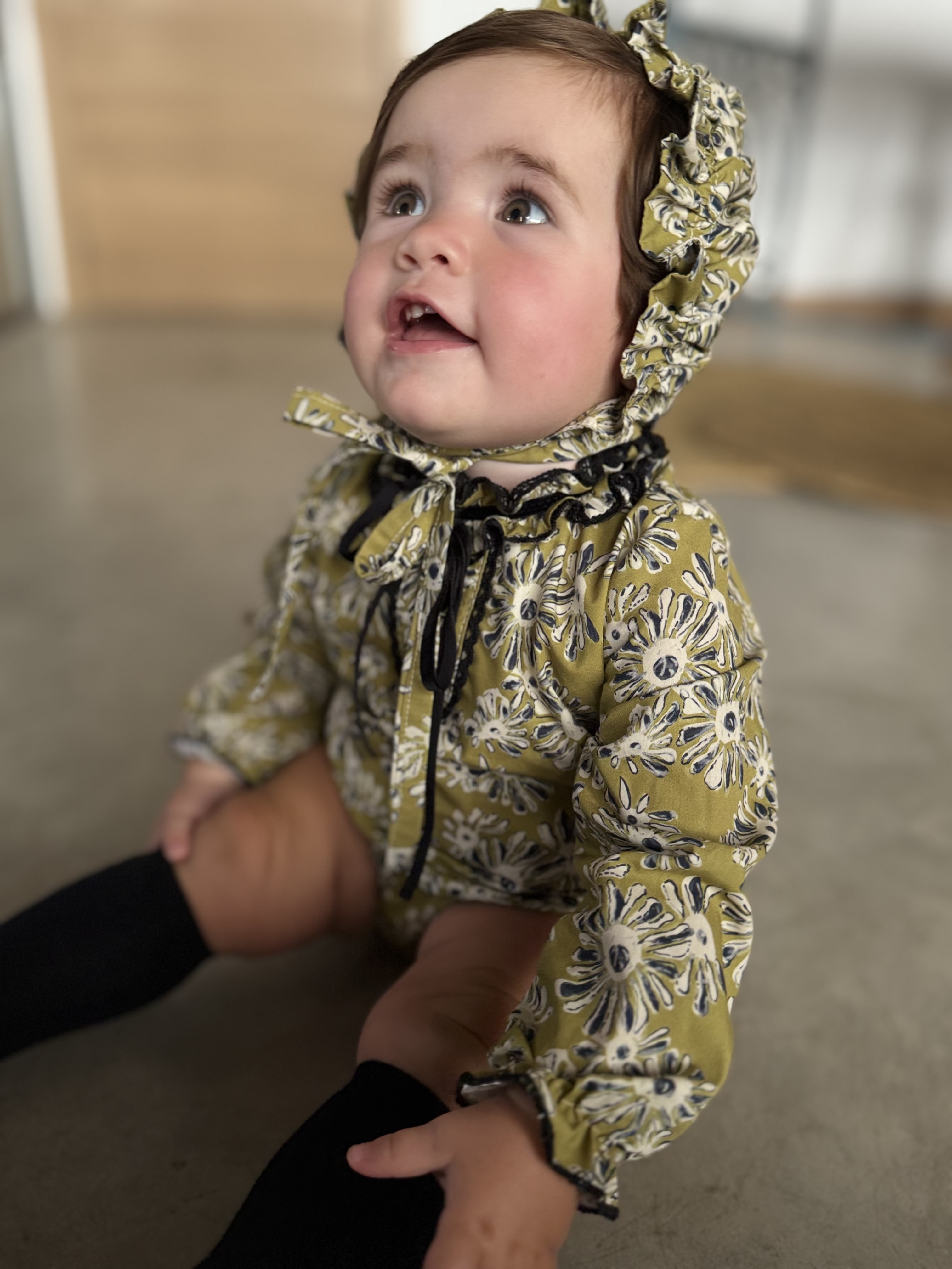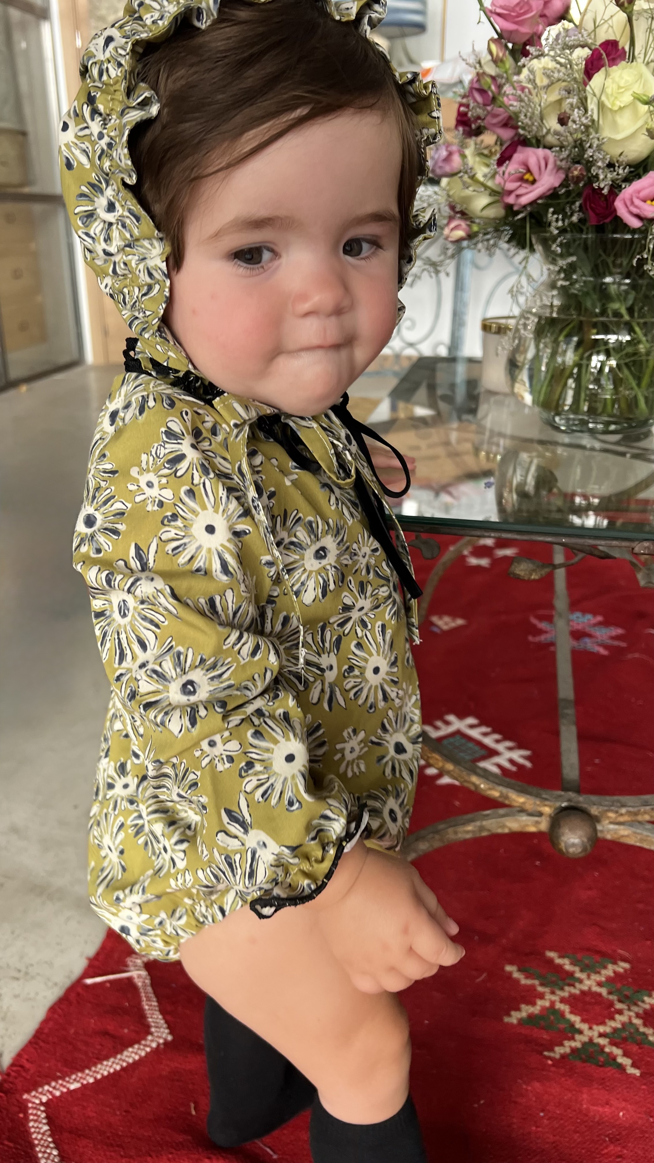 Pelele con manga larga y botones. en la parte inferior lleva botones para facilitar el cambio de pañal.