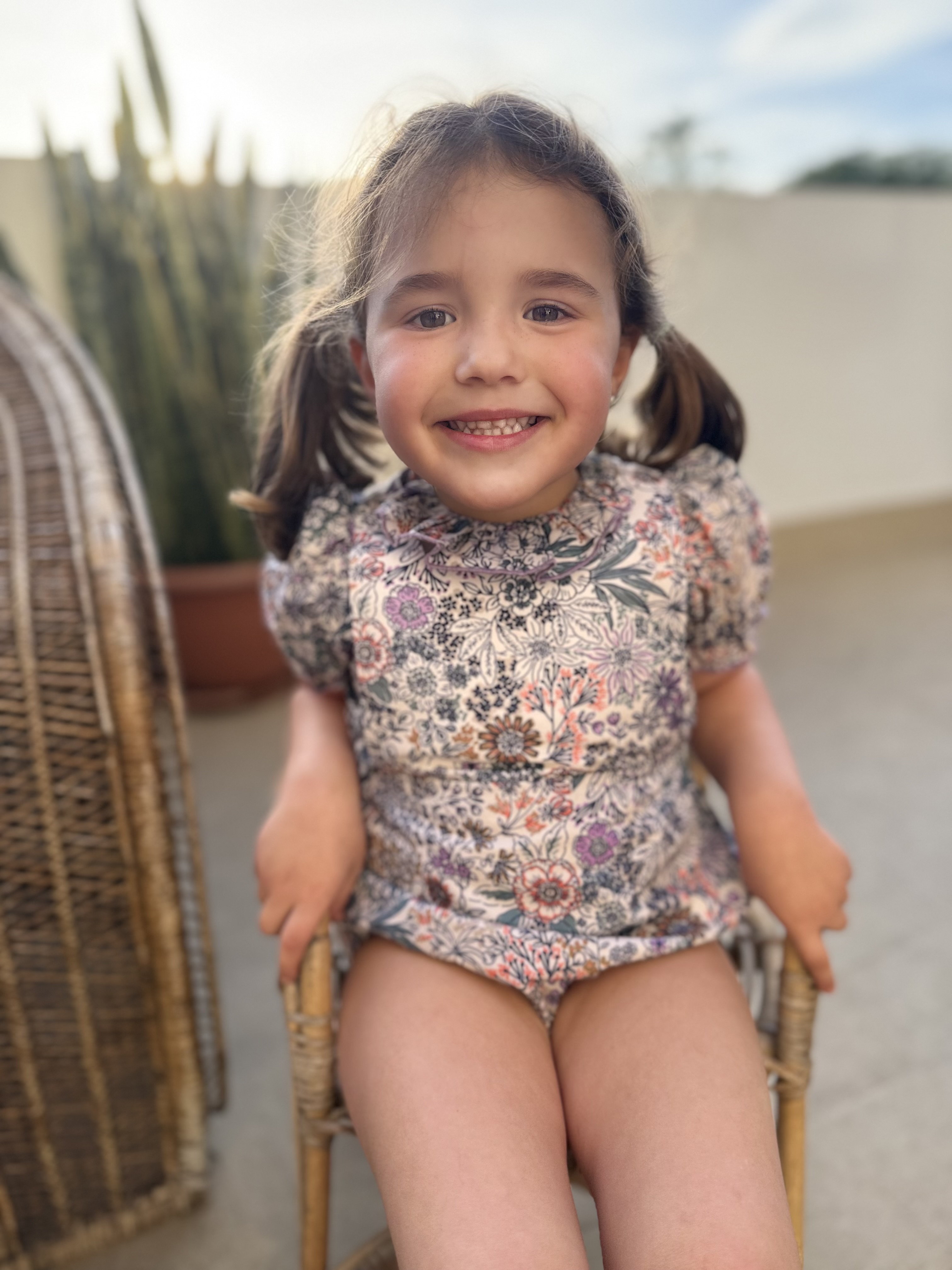 Ranita con tirantes y botones. en la parte inferior lleva botones para facilitar el cambio de pañal.