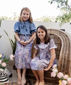 Vestido de manga corta con cuello de batista con punto smock botones delanteros de adorno, se abrocha en la espalda.